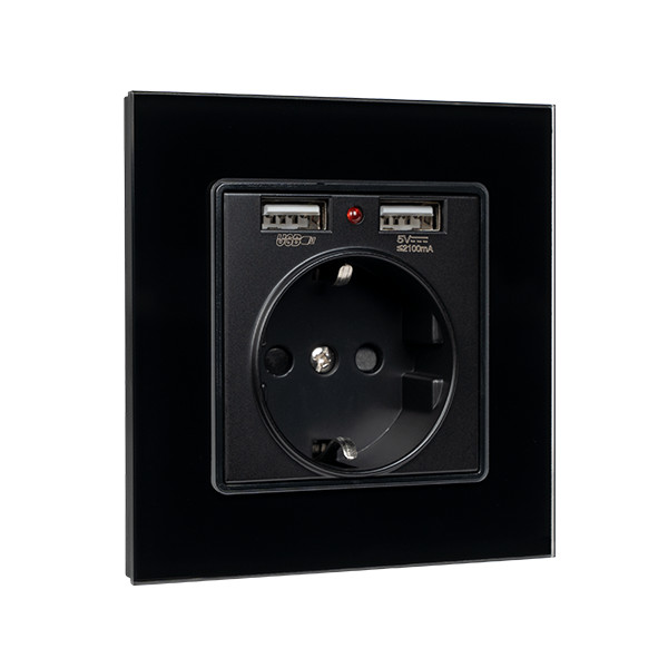 NIEMIECKIE GNIAZDO 16A 2XUSB ZE SZKLANĄ RAMĄ BL.